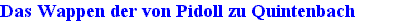 Francios Pidolle in der Nähe von Trier mehrere Eisenhütten mit über 200 Beschäftigten. Aus diesem Grunde wird er, wegen seiner unternehmerischen Fähigkeiten von Kaiser Karl VI. 1714 in den erblichen Adelsstand mit dem Titel "Ritter von Pidoll, Edler zu Quintenbach" erhoben. Ab da hieß er: Franz von Pidoll zu Quintenbach. |